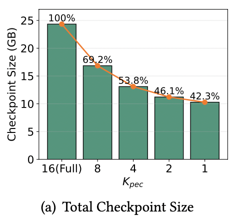 - Partial Experts Checkpointing (PEC) 每次只保存部分专家参数从而减少参数量